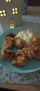👉 galletas Quely + avena picada, que queda súper crujiente y nutritivo.
