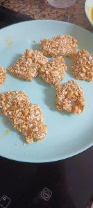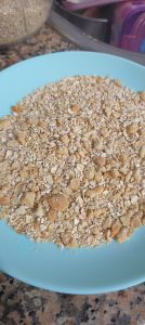 👉 galletas Quely + avena picada, que queda súper crujiente y nutritivo.